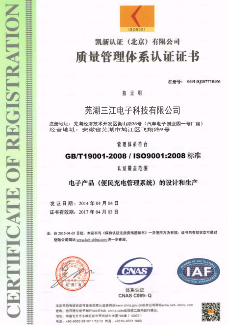 蕪湖三江電子科技有限公司,位于美麗的江城蕪湖,是一家目前國(guó)內(nèi)專業(yè)從事智能式自助產(chǎn)品的研發(fā)、生產(chǎn)、銷(xiāo)售及自助產(chǎn)品服務(wù)為一體的科技型企業(yè)。主要經(jīng)營(yíng):電動(dòng)車(chē)充電站,電動(dòng)車(chē)充電站配件,小區(qū)充電站,便民充電站、投幣充電站、手機(jī)支付充電站、刷卡充電站、智能充電站、智能充電系統(tǒng)等。歡迎大家來(lái)公司參觀考察!公司秉承“顧客至上,銳意進(jìn)取”的經(jīng)營(yíng)理念,堅(jiān)持“客戶至上”的原則為廣大客戶提供優(yōu)質(zhì)的服務(wù)。歡迎廣大新老客戶惠顧!